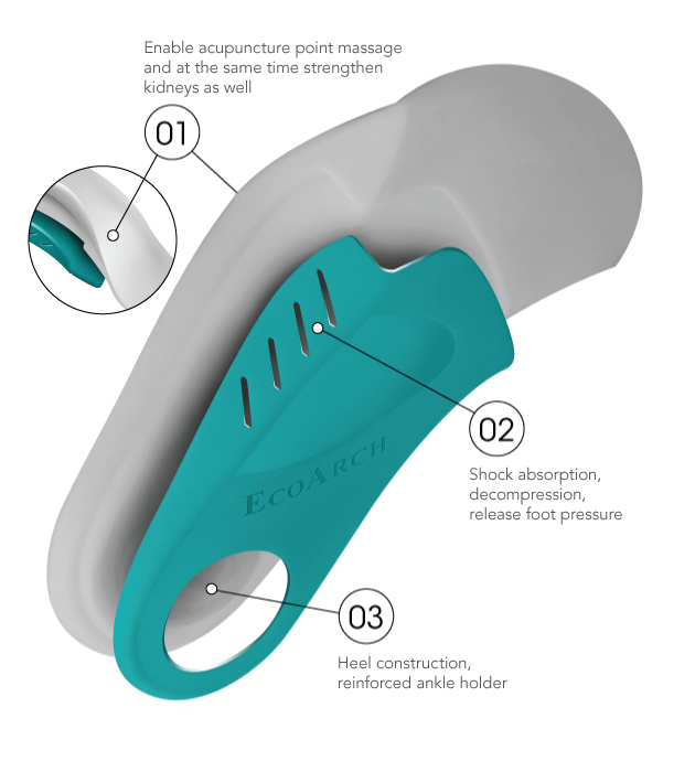 With the unique contour design, Eco Arch is able to analysis users plantar pressure and weight distribution which will help to improve body posture and balance.